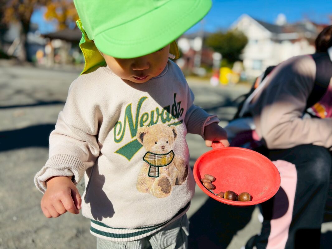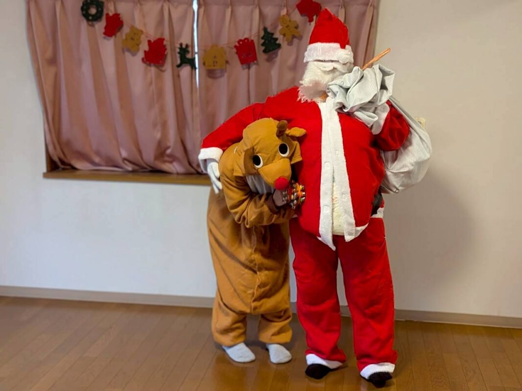 保育ブログblog 2025.12.26 秋から冬へ🍃 まだまだどんぐりに夢中な子どもたち🌰 季節も冬へと変わってきて、黄色や赤い葉っぱもたくさん落ちていました🍂 0歳児クラスの子どもたちも落ち葉に興味深々!! 「何だろう?」と手に持ってじーっと見つめていました🍁 24日にはクリスマス会🎄 なんと!サンタクロースとトナカイが来てくれ、みんな大喜びしました😊 プレゼントをもらい、クリスマスメニューの給食も✨ みんな喜んで食べました! 前の記事 一覧に戻る