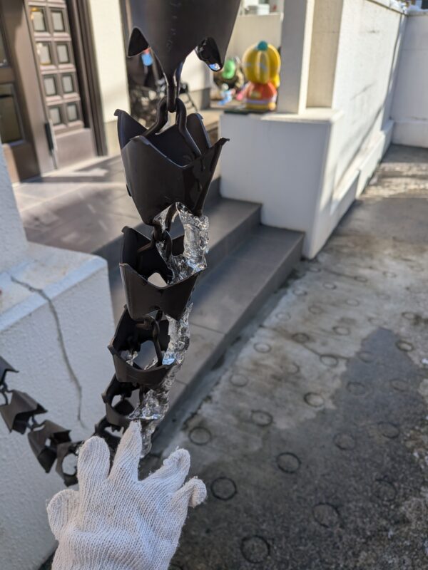 玄関の鎖樋にはつららもできていました✨