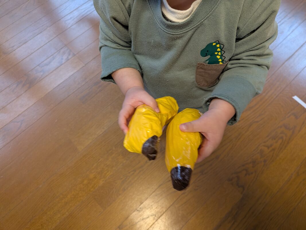 バナナ好きの1歳児の子どもたちがバナナを先生と一緒に作りました😊
